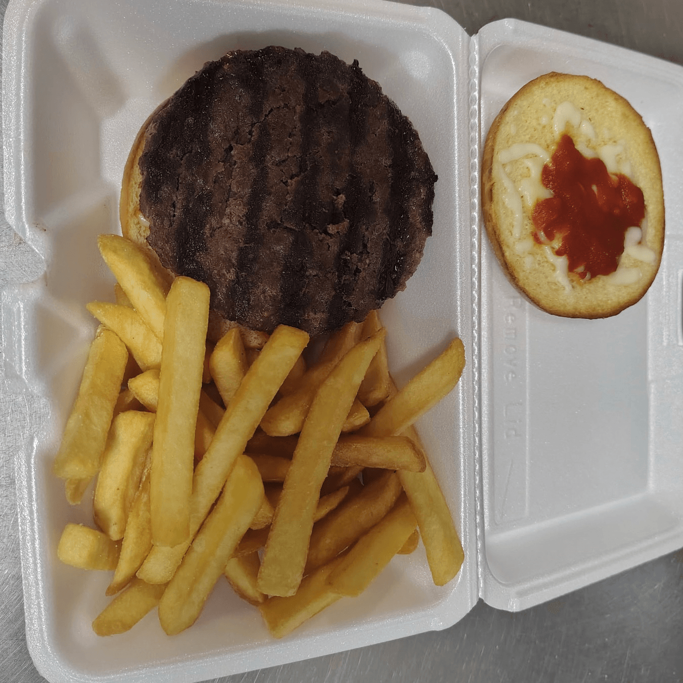 6 Wings with fries. Choice of garlic parmesan, hot, mild, BBQ, lemon pepper or honey BBQ, sweet chili.